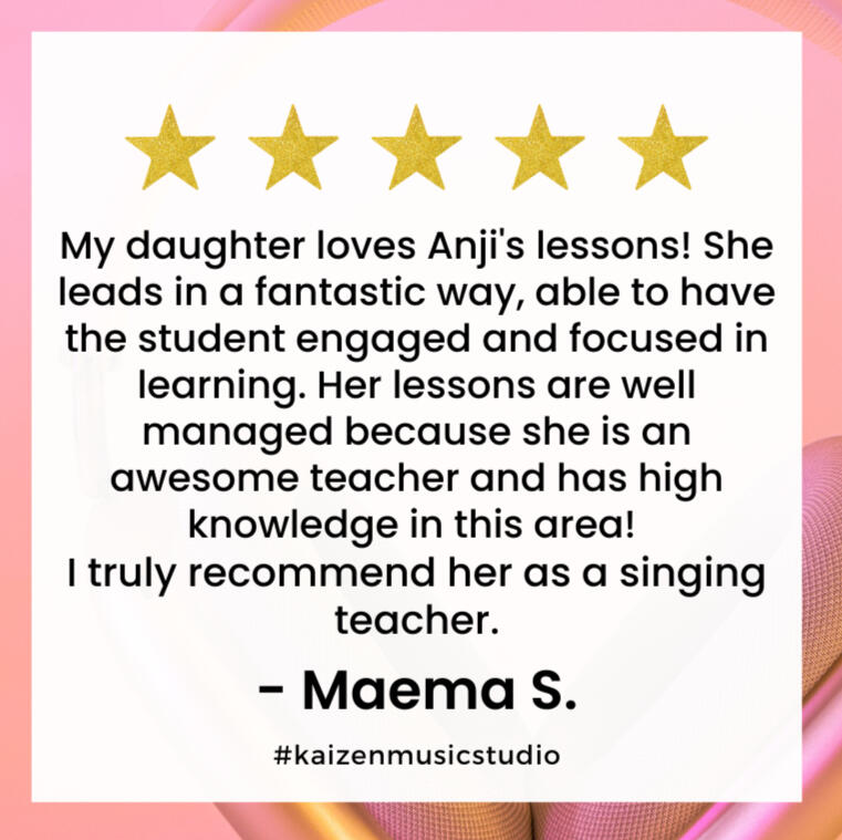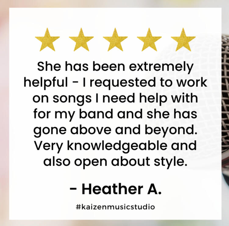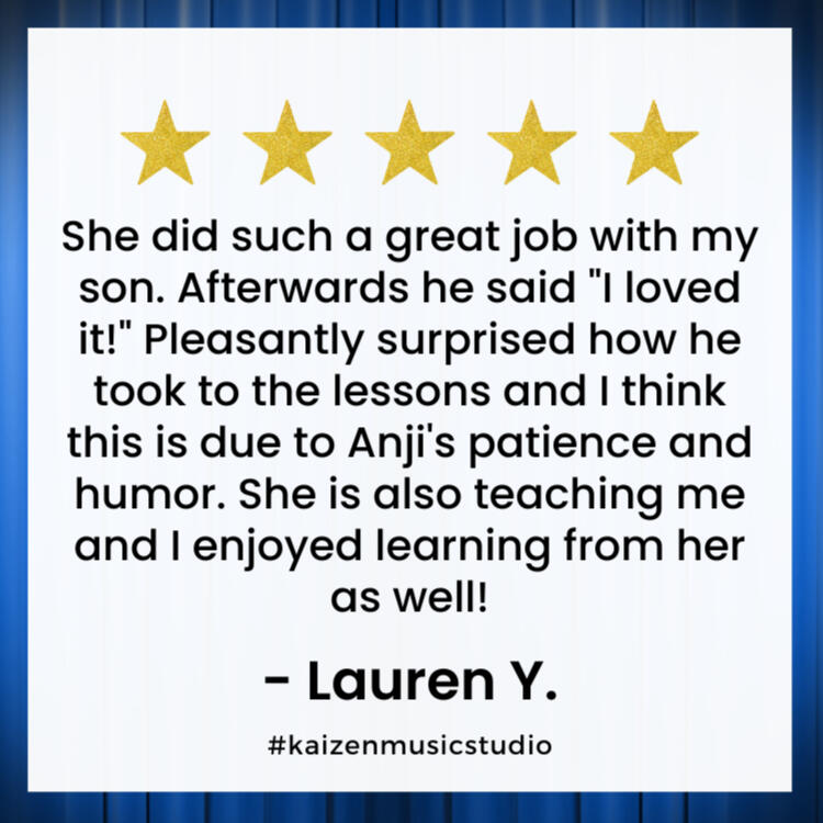 "An overall great experience working with Anji at Kaizen Music Studio! She is knowledgeable, professional & makes it fun. I would highly recommend getting lessons or working with her at the Studio."